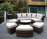 Create a beautiful outdoor seating area that you have always dreamed of! Constructed from a lightweight aluminum frame and hand woven with a rich brown color PE rattan, this set is designed to withstand the elements. The Ohana ( Family ) Collection will be the center for any outside gathering for years to come. It is a timeless design highlighted by clean lines and minimalist charm. It is designed to keep you and your friends comfortable for hours! The tempered glass-topped coffee table is perfect for setting down food and beverages; while the deep seats help you to relax. Purchase with Confidence! Cushions included, removable covers for easy clean upAll Ohana Collection Products are made exclusively by Ohana Depot..../ Genuine Ohana Outdoor Patio Wicker Furniture 7pc All Weather Round Couch Set / Wicker Rattan